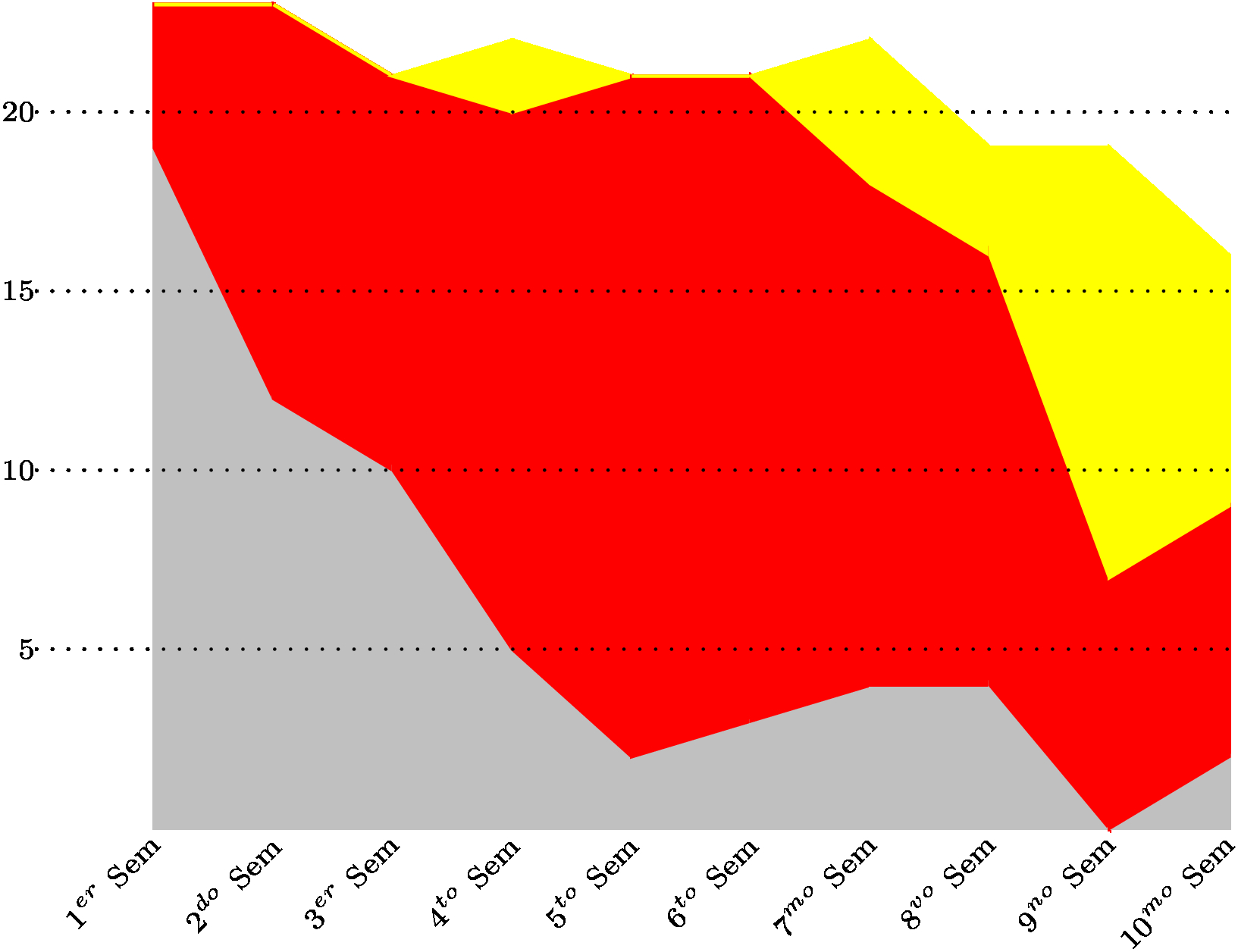 Esta propuesta puede ser analizada por el número de créditos dedicados a cada área, por niveles de cursos (Introductorios, Intermedios, Avanzados y Proyectos).